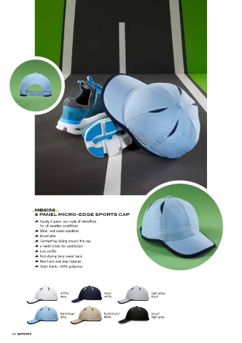 6 PANEL MICRO-EDGE SPORTS CAP Outer fabric: 100% polyester