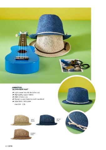 Light summer hat with decorative cord